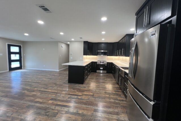 Great spacious kitchen with lots of cabinets, under counter lighting & all new appliances, including a large new refrigerator. All electric home, all new insulated windows, interior & exterior insulation was added, nice bathrooms, all new plumbing, new bath tub and shower.